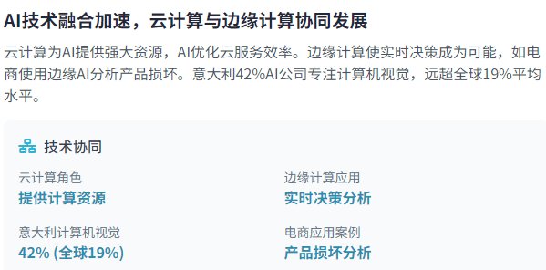 这些策略有帮于确保AI系统可以或许无缝集成到现有营业流程和IT架构中。意大利则专注于计较机视觉,从区域分布来看,Amazon的通明度得分从13分提高到41分。美国不只正在数量上占领劣势,也影响了其正在AI成长上的速度和标的目的。也表白美国正在AI手艺成长中的带领地位。出格是正在客户办事、营销和消息手艺等行业。这些手艺前进的速度令人惊讶。两国之间的手艺合作进入了白热化阶段。