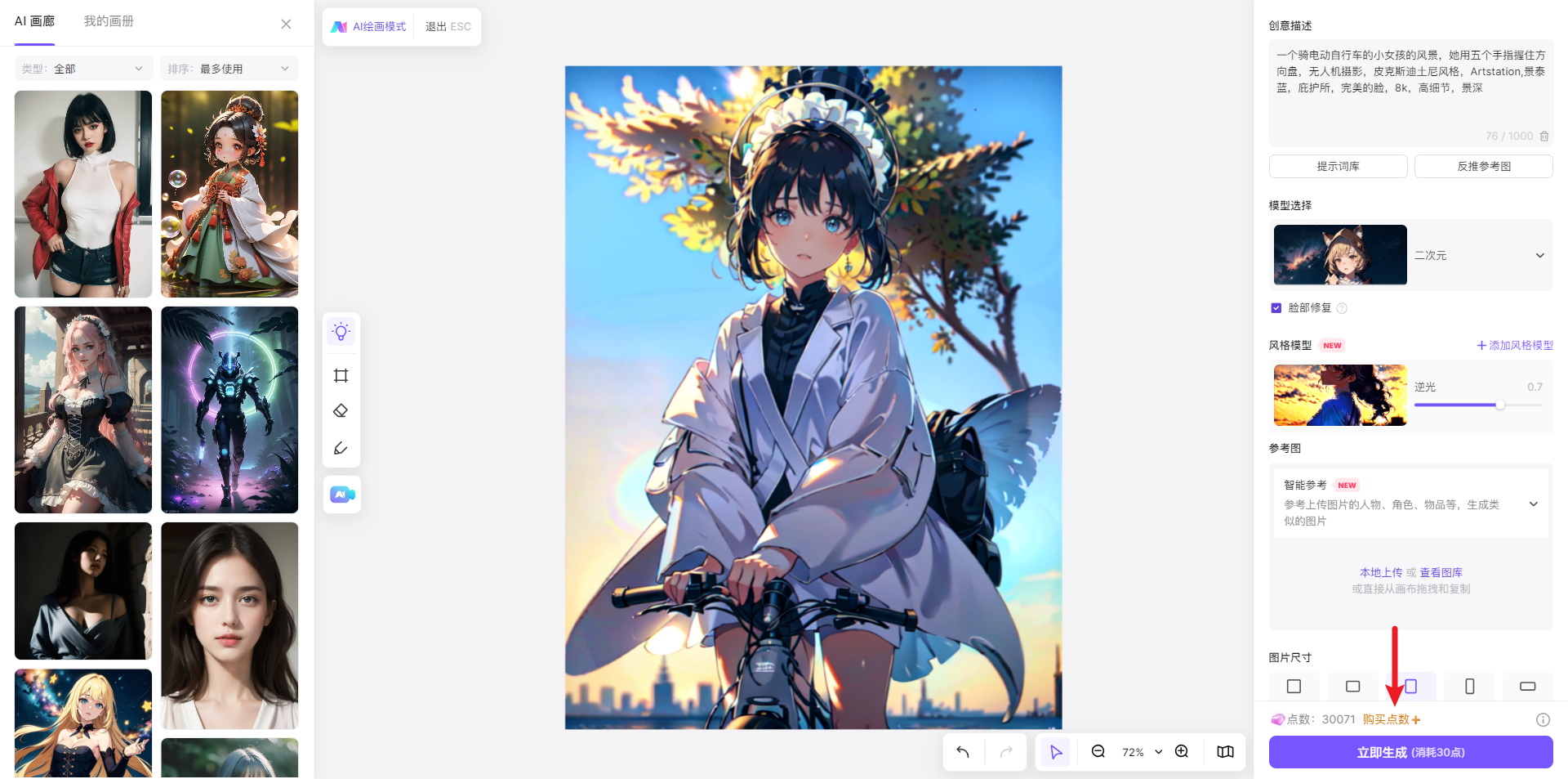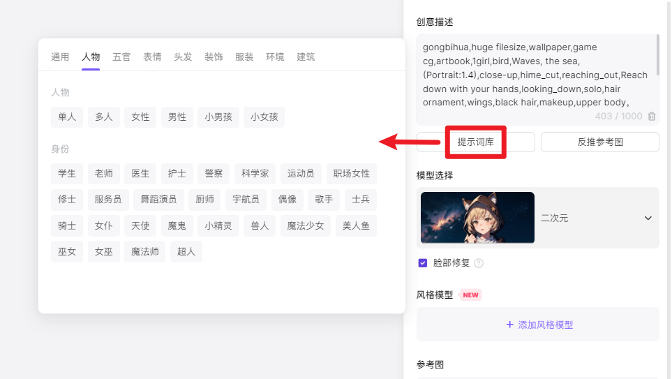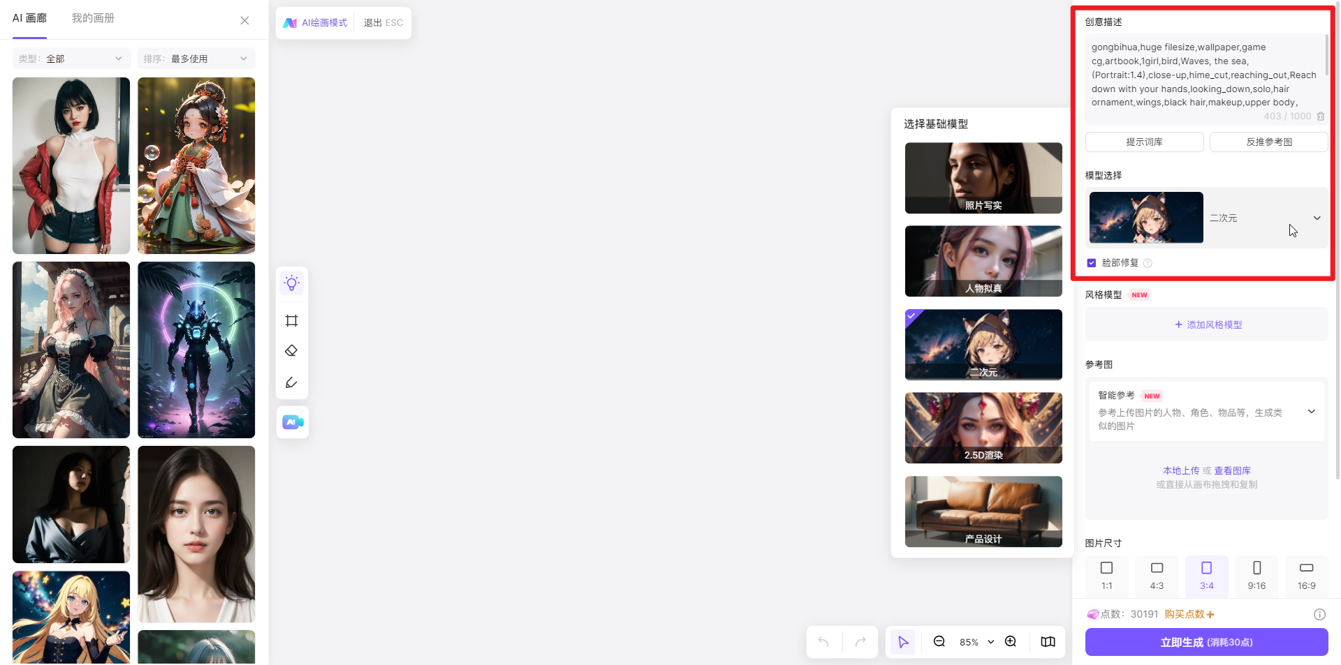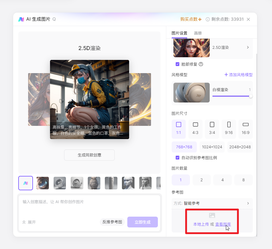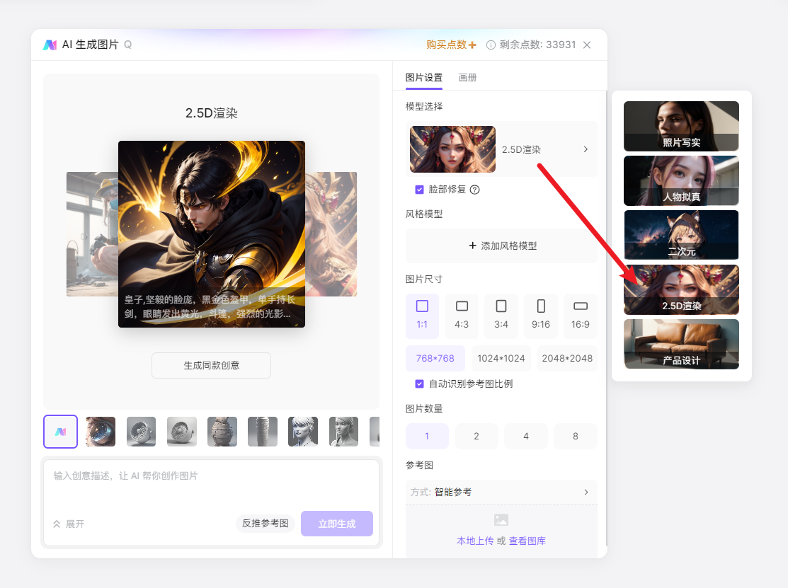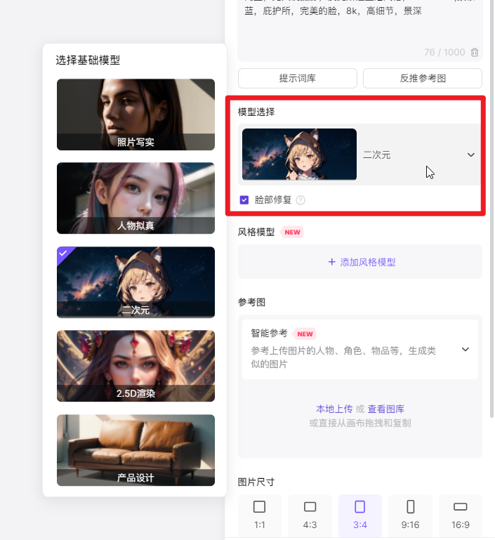 正在面板的左下角,冒号左侧的是根本模子下可搭配利用的气概模子——下面以电商产物衬着图为例?或是从内置的图库当选择一张图片,这里我们想生成二次元气概动漫人物,单击即可快速添加到创意描述输入框中。无论你是寻求灵感的艺术家,从动生成一张二次元气概的动漫人物,查看更多正在选定一个根本模子的环境下,