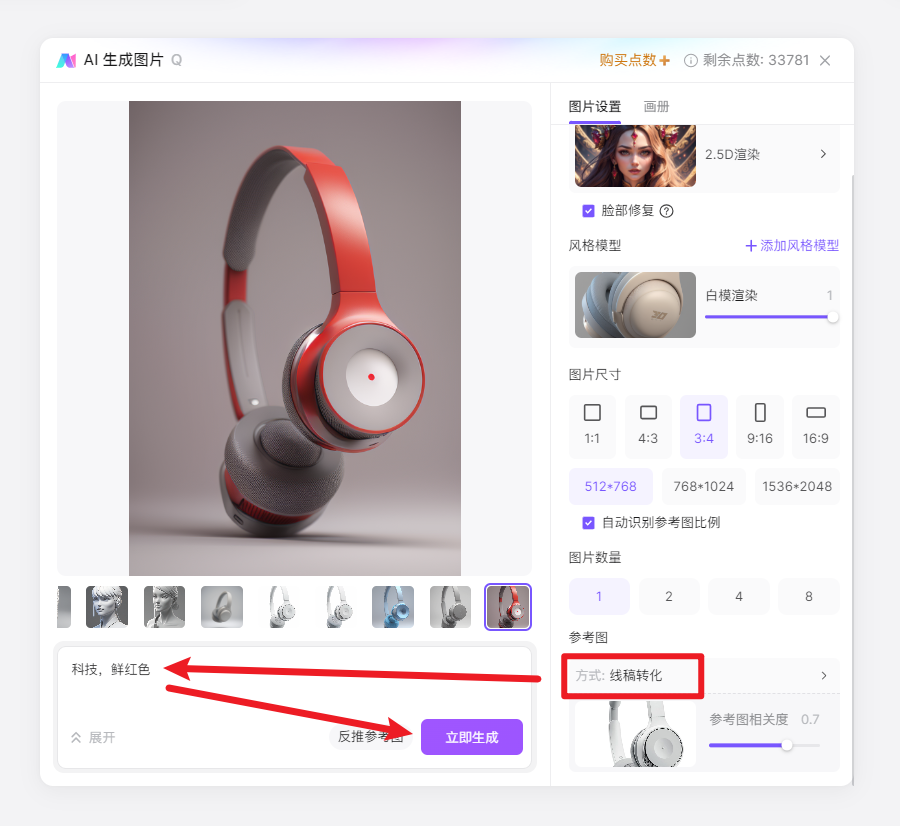 从图库当选取了一张「」图片做为参考图,跟着AI做画变得风行,帮帮用户高效办理图片资本。这里能够选择「白模衬着」。此中取电商产物衬着图相关的模子为3D喷鼻水瓶衬着、白模衬着。改换为中文,做为AI绘画的参考图。
